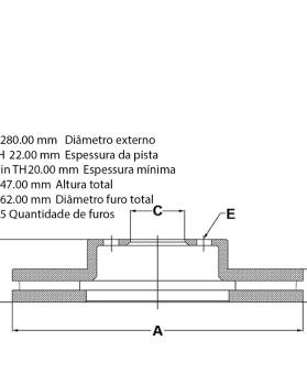 C62.00 mmdiâmetro furo total