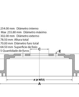 C79.00 mmdiâmetro furo total