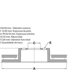 C 72.00 mm diâmetro furo total