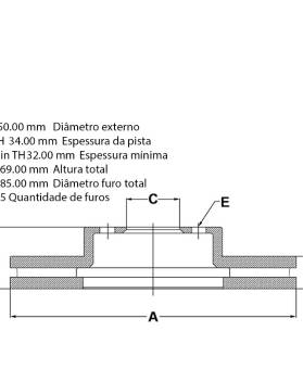 Diâmetro do furo central 68,000 mm
