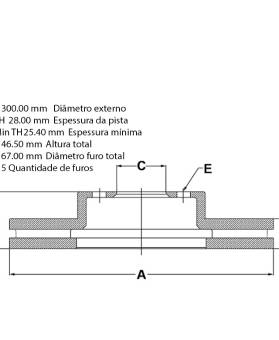 C 67.00 mm diâmetro furo total